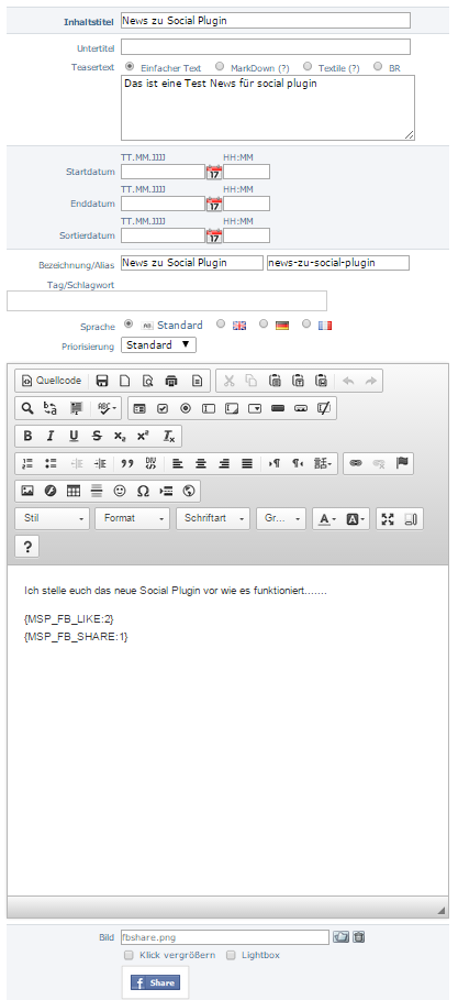 Ich hab das Social Plugin für phpwcms installiert und mal ein bischen getestet. Ich hänge momentan ein bisschen fest. Wenn ich eine News Liken oder Sharen will, shared er mir nur den Link von meiner HP. Den Text dazu von der news oder sonstiges lässt er weg. Was für mich eigentlich interessant wäre.