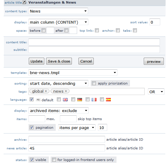Innerhalb des CPs musst du allerdings die Artikel-ID der NEWS und des ARCHIVS eintragen... dann klappt das!