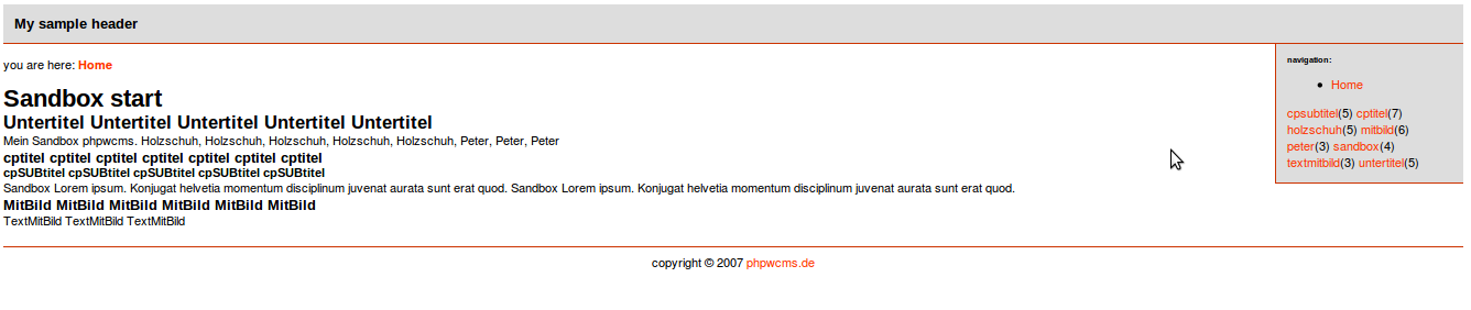 Hier endet allerdings der Geltungsbereich einer mathematischer Exaktheit des Cloud-Programms, da die Suchfunktion von phpwcms sich in der Regel über die ganze Site, jedenfalls über andere Bereiche als die Tagcloud, erstreckt. Bei den Beispielen oben kann 'FUSSSBALLL' demnach häufiger in der Ergebnisliste der --> Suche erscheinen, als in dem kleinen ebenenbezogenen --> Wölkchen.