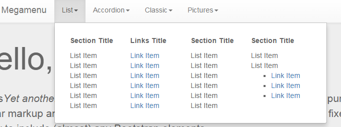 mega menu, navlistul und bootstrip